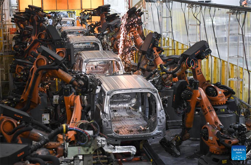 | Picha hii iliyopigwa Tarehe 20 Machi 2023 ikionyesha karakana ya Kampuni ya Kuunda Magari ya GAC Motor huko Guangzhou, Mkoa wa Guangdong. (Xinhua/Deng Hua) |