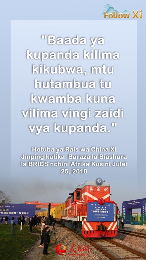 Mwaka huu unatimiza miaka 100 ya kuzaliwa kwa Nelson Mandela. Acha ninukuu moja ya misemo yake maarufu, "Baada ya kupanda kilima kikubwa, mtu hutambua tu kwamba kuna vilima vingi zaidi vya kupanda." Hakika, historia ya ushirikiano wa BRICS ni safari ya nchi zetu tano kupanda kilima kikubwa ili kufikia urefu mpya. Ninasadiki kwamba pale nchi zetu tano zitakaposonga mbele pamoja, tutapanda vilele vipya, kufikia urefu mpya, na kutoa mchango mkubwa zaidi kwa amani na maendeleo ya binadamu.