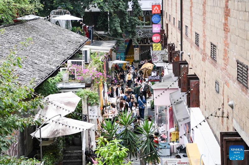 | Watu wakitembelea Majengo ya Kitamaduni na Ubunifu ya Beicang katika Wilaya ya Jiangbei ya Mji wa Chongqing, Kusini Magharibi mwa China, Oktoba 4, 2024 (Xinhua / Wang Quanchao) |