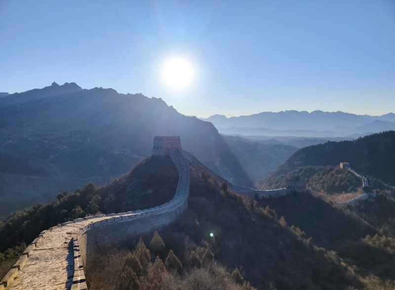 Picha hii iliyopigwa Januari 1, 2023 ikionyesha mandhari ya machweo ya jua kwenye sehemu ya Simatai ya Ukuta Mkuu wa China katika Eneo la Miyun la Beijing, China. (Xinhua/Xing Guangli)