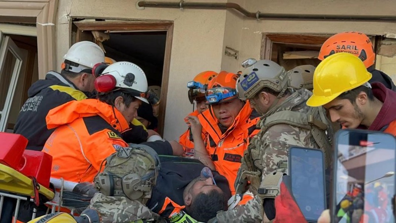 Timu ya Uokoaji ya Ramunion, pamoja na timu ya uokoaji ya Uturuki, wakisaidia kuokoa familia katika Mji wa Belen wa Hatay, Uturuki. (Picha imetolewa na Kikosi cha Uokoaji cha Ramunion)