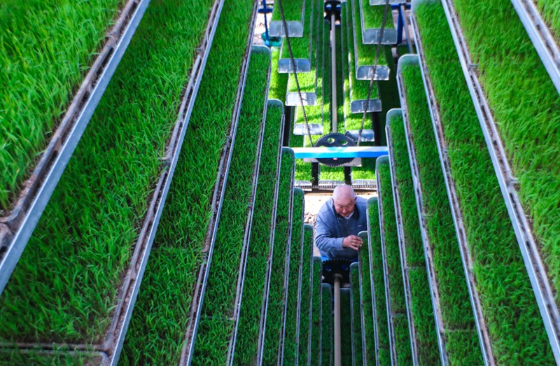 Tarehe 15, Machi, wakulima waliangalia na kutunza miche ya mpunga unaoweza kupata mavuno mara mbili kwenye kiwanda cha kiotomatiki cha kuotesha miche kwa kutumia teknolojia za akili bandia cha Ushirika wa Qinglonghe wa Kijiji cha Zhanglou katika Mji wa Xinyang, Mkoa wa Henan nchini China. Hivi sasa ni wakati wa kilimo cha majira ya mchipuko na kujiandaa kupandikiza miche. Wakulima wa kijiji hicho wamehamisha mashamba ya kuotesha miche kutoka “ardhi” mpaka “hewani”, na kutoka nje mpaka ndani. Wanatumia teknolojia kuotesha miche kwenye kiwanda cha kiotomatiki cha kuotesha miche kwa kutumia akili bandia, hali ambayo imeongeza ufanisi na ubora wa uoteshaji wa miche.